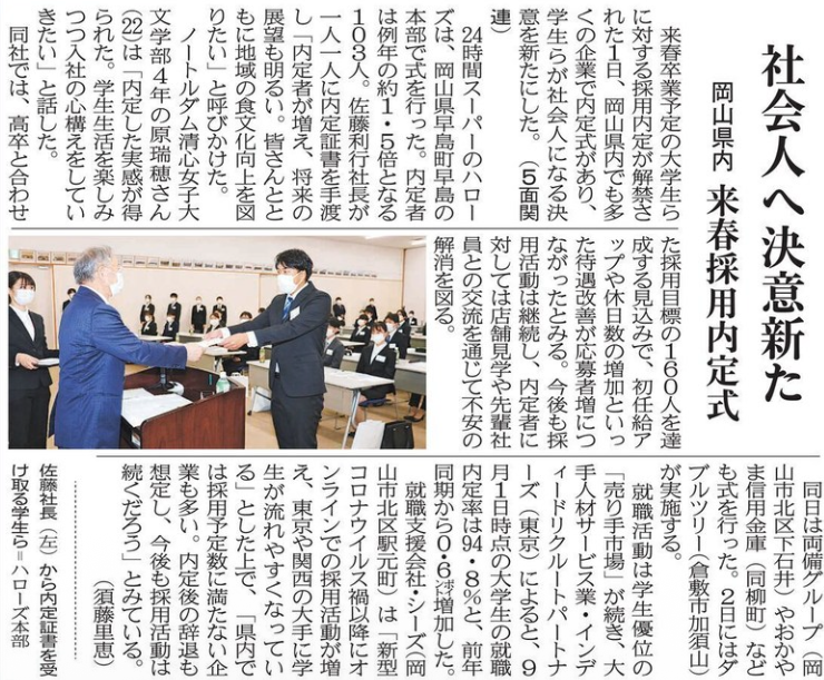 山陽新聞〔2025年10月2日朝刊〕に採用に関する記事が掲載されました。